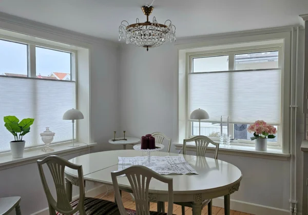 Plisségardiner är ett särskilt bra val i Malmö eftersom de kombinerar funktion och design på ett diskret sätt. Med rätt väv kan du minska bländning från lågt solljus, skapa en behagligare temperatur inomhus och ändå behålla rummets ljus och karaktär.