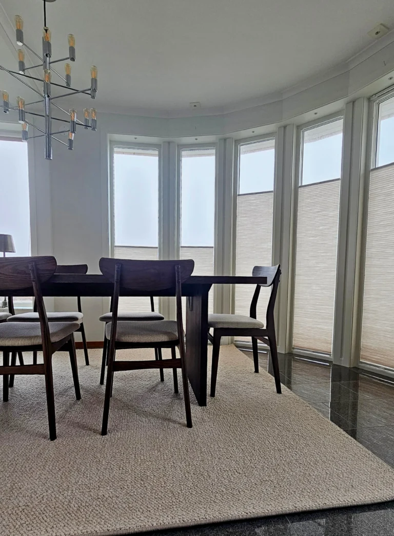 Borås har ett omväxlande ljus med både starka solperioder och många dagar med mjukare, diffust ljus. I områden som Brämhult, Sjöbo och Hestra har många hem stora fönsterpartier där solen kan ge både bländning och värme under eftermiddagen. Plisségardiner ger dig full kontroll över ljuset — du kan placera dem i mitten av fönstret för att dämpa ljuset men samtidigt behålla utsikten.