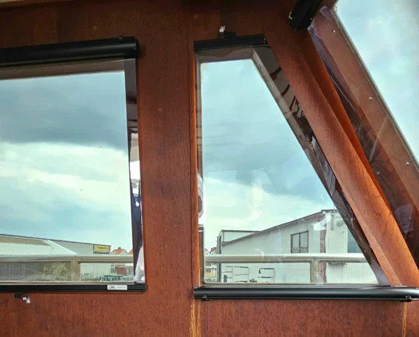 Ja, vi erbjuder både rektangulära och snedskurna modeller för att passa unika fönsterformer i hytter och fartyg.