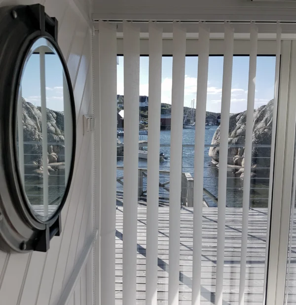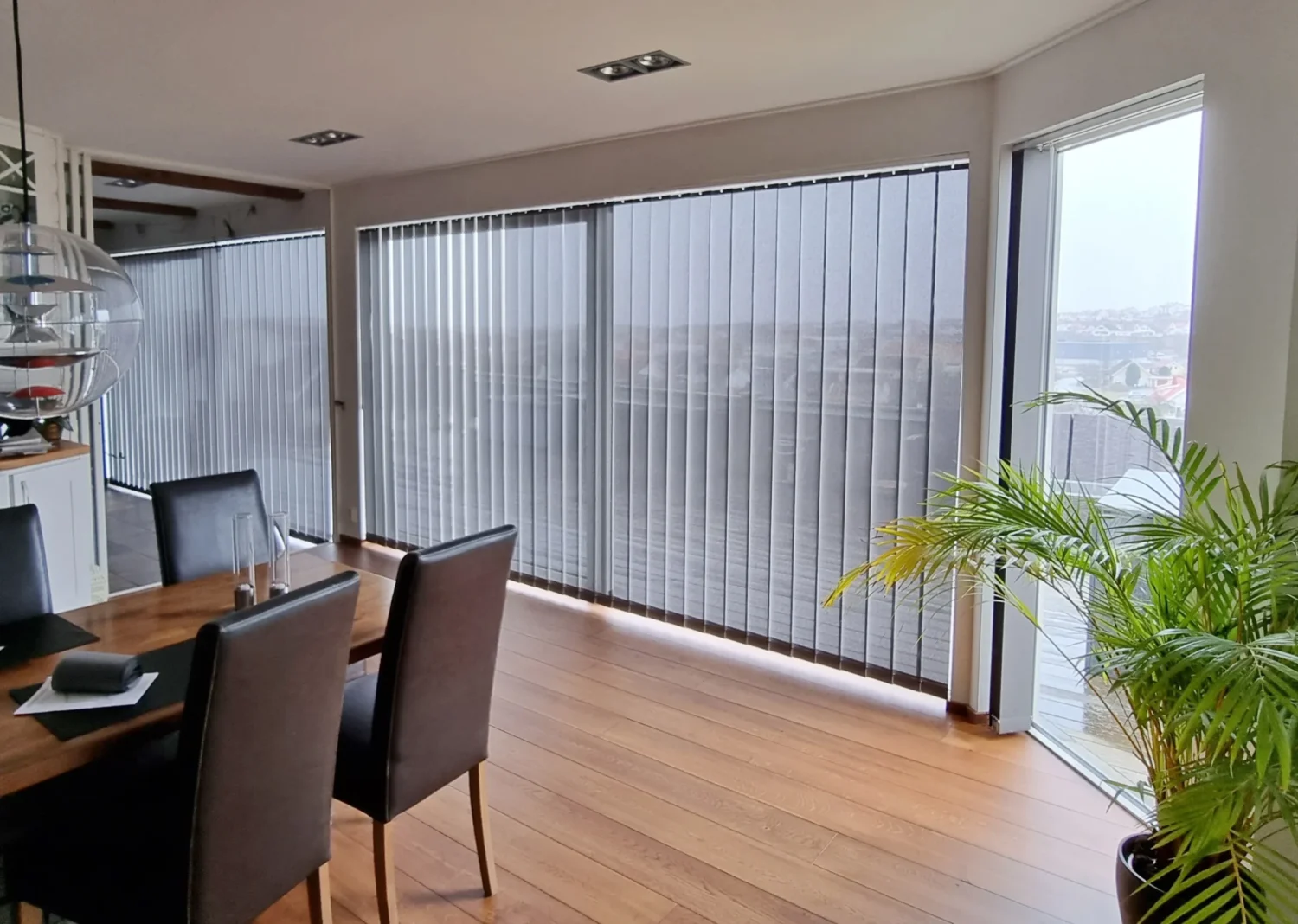 Lamellgardiner är ofta det bästa valet för stora glasytor och skjutdörrar. De vertikala linjerna ger rummet höjd och den enkla manövreringen gör det smidigt att täcka breda ytor.